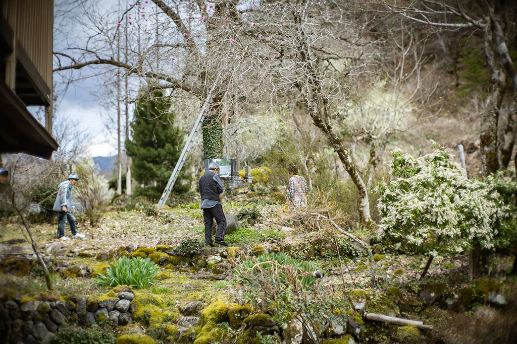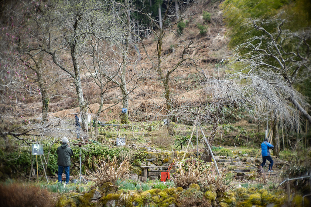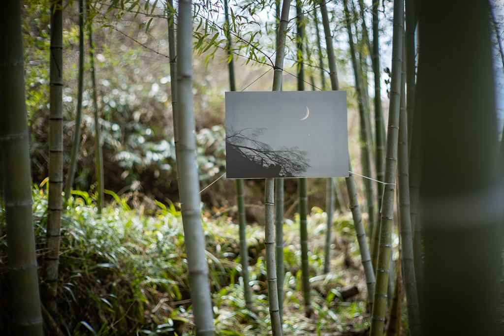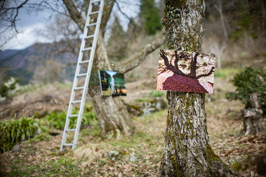 六ノ里出身の写真家の和田さん夫婦が実家の庭に写真をレイアウト。